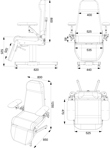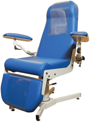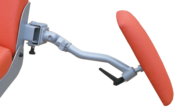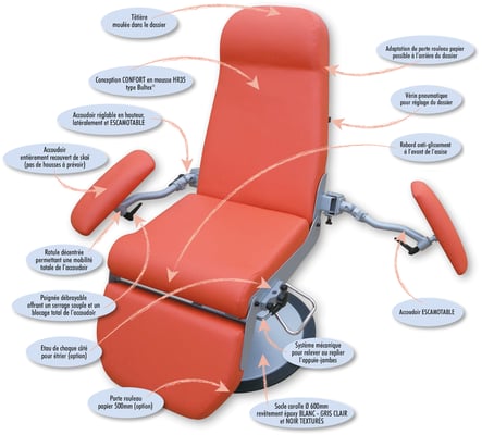 Les accoudoirs sont montés sur des rotules, permettant en un simple mouvement de positionner rapidement l'accoudoir pour le prélèvement.